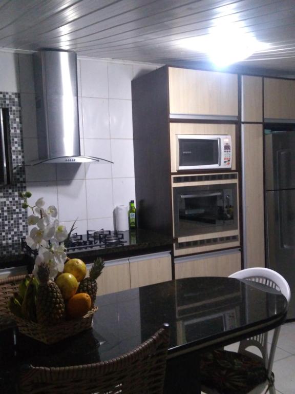 A casa de temporada tem 3 quartos, TV de tela plana com canais via satélite, cozinha equipada com micro-ondas e geladeira, máquina de lavar roupa e 3 banheiros com chuveiro.