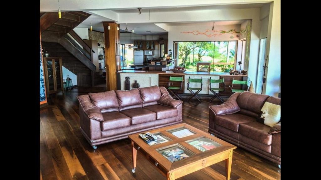 A casa de temporada dispõe de 4 quartos, TV de tela plana, cozinha equipada com lava-louças e micro-ondas, máquina de lavar roupa e 4 banheiros com chuveiro.