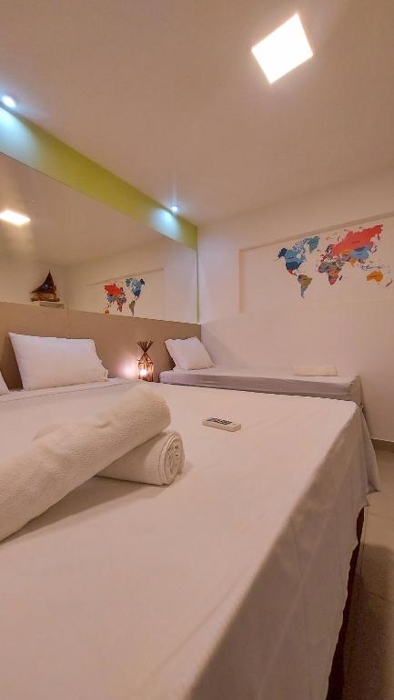 Na pousada, cada quarto tem ar-condicionado e banheiro privativo.
